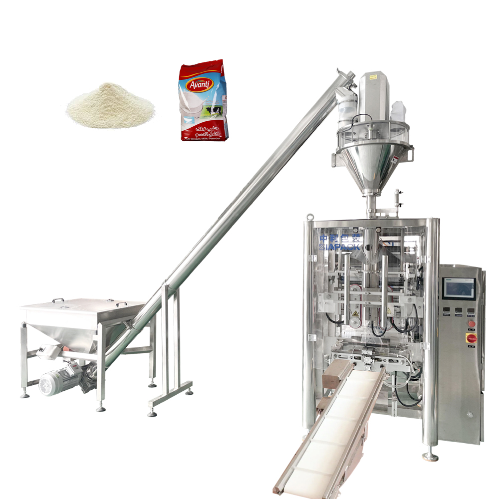 Esta máquina incluye un conjunto ZL520 Máquina de envasado, sellado, llenado y formación de bolsas verticales, un conjunto de máquina dosificadora de barrena ZL2000. Un conjunto de elevador de tornillo y un conjunto de transportador de salida. Conteo de bolsas. Ampliamente utilizado para diversos empaques de bolsas de material en polvo. Como empaques de bolsas de café en polvo, empaques de bolsas de harina de trigo, empaques de bolsas de polvo químico, etc.