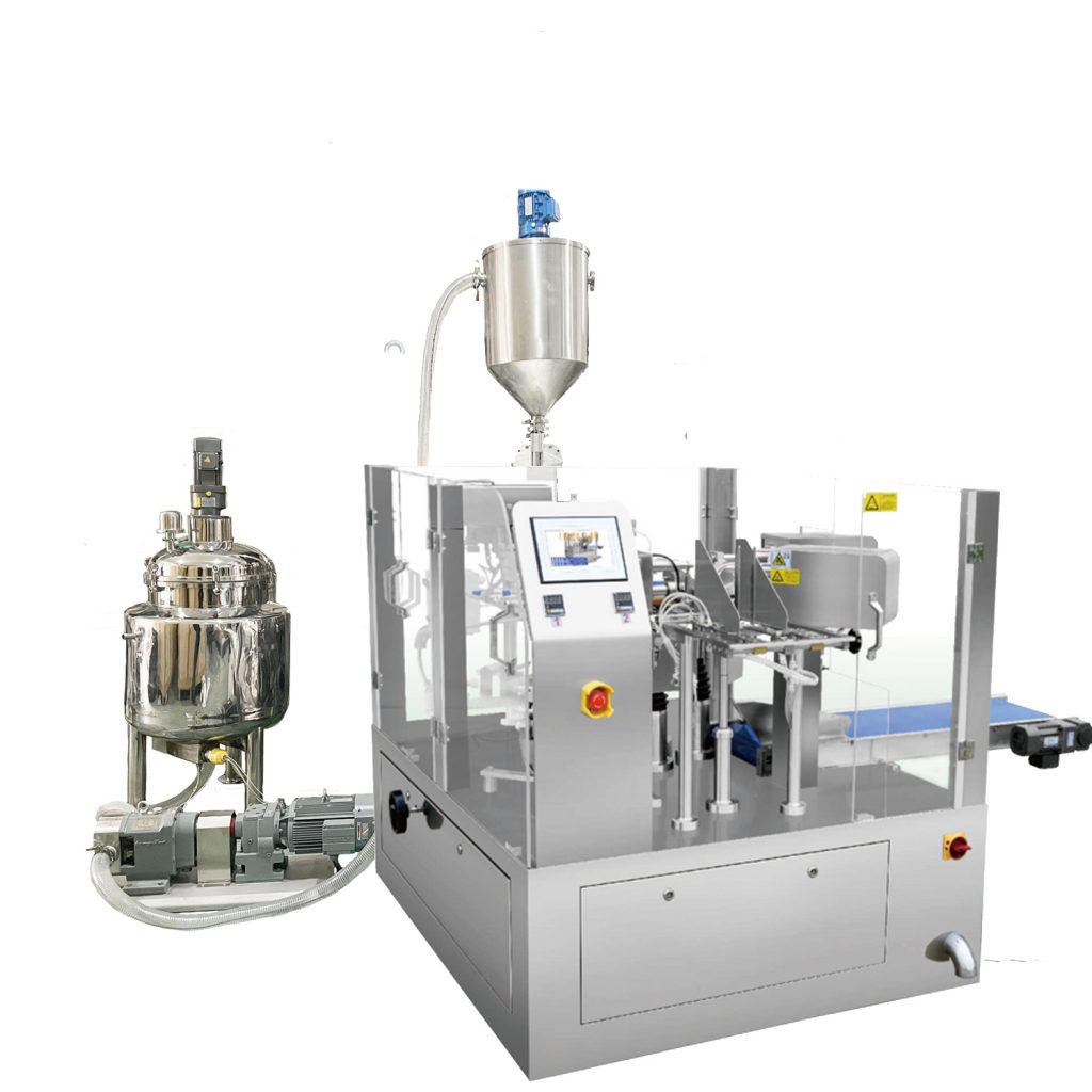 Equipado con relleno de pistón como sistema de dosificación, se aplica ampliamente al empaque líquido y pasta, como detergente, suavizante, champú, gel de ducha, leche, agua, jugo, salsa de soja, aceite, ketchup, mayonesa, etc.