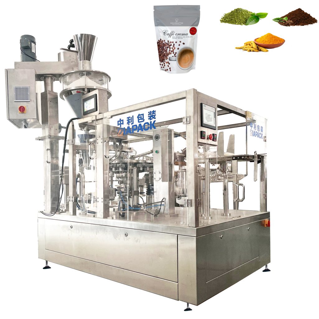 Empaquetadora de bolsa rotativa con diferentes dosificaciones (tales como pesador de cabezales múltiples, llenadora de tornillo sin fin, llenadora de líquidos, etc.), puede ser adecuada para el empaque automático de granulado, polvo, líquido, pasta, etc. Diferentes tipos de productos con la bolsa de pie prefabricada, la bolsa plana y pronto.