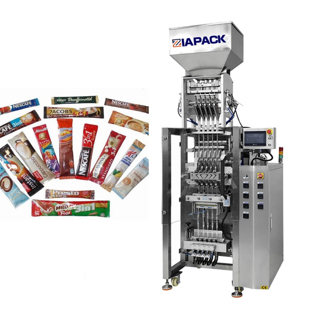 Este es un paquete de palo multilanes máquina de embalaje de la bolsita, aplicable para empacar materiales en polvo como leche en polvo, jugo en polvo, café en polvo, chocolate en polvo, grano en polvo, polvo de té verde, polvo medicinal, polvo saludable, etc. en las industrias de la famacia, alimentos y productos químicos agrícolas.