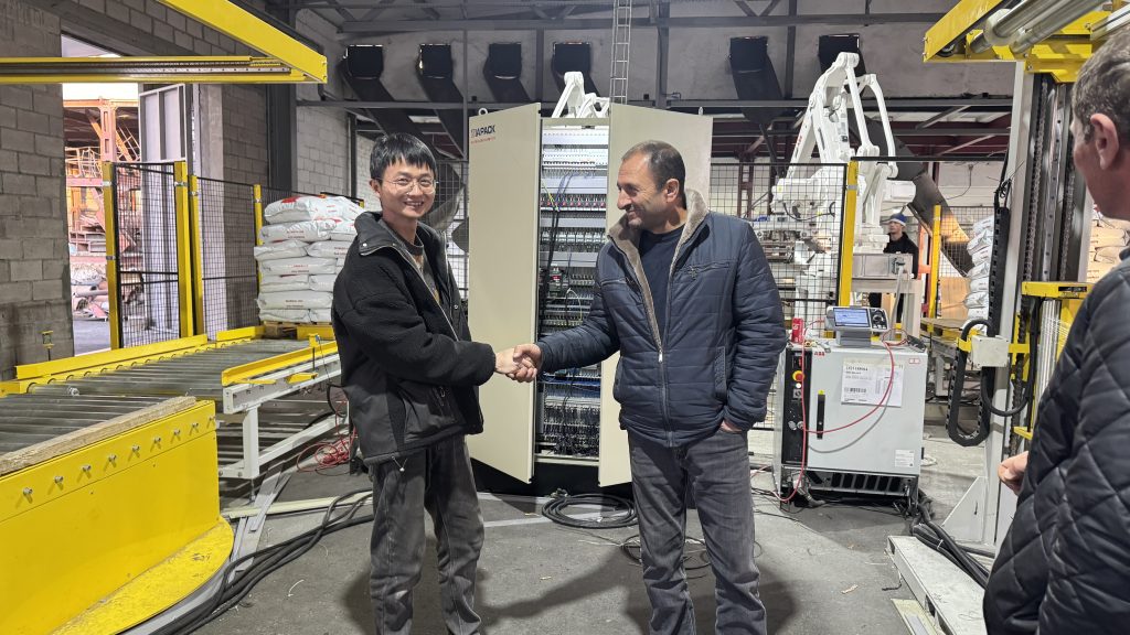 Estás aquí: Casa » Noticias » Dos unidades de línea de transporte, paletizado y ensacado automático de alimentos para mascotas de 25 kg comienzan a funcionar en la fábrica de nuestro cliente.
