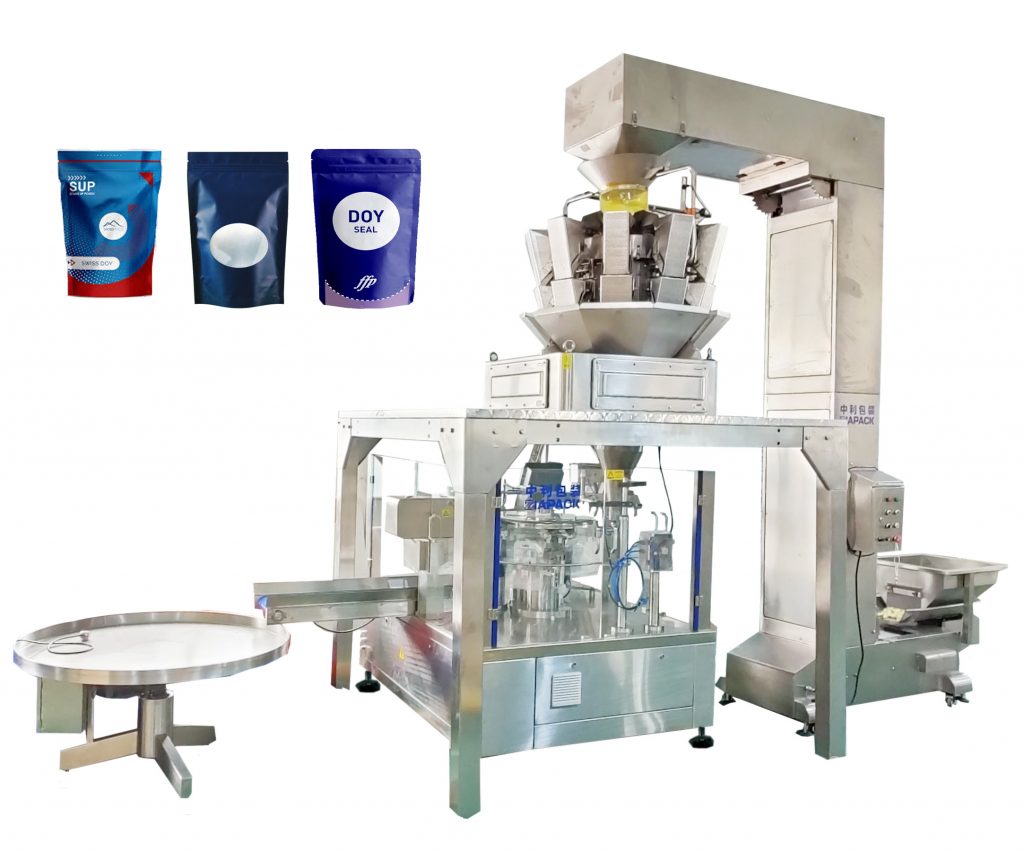 La máquina de llenado y sellado de bolsas prefabricadas, compuesta por 8 estaciones de trabajo de eficiencia y estabilidad, enfatiza el paquete de bolsas verticales, bolsas con cremallera, bolsas con boquilla y varias bolsas prefabricadas. Cooperado con diferentes sistemas de dosificación (combinador de peso / balanceador lineal / tornillo sinfín / llenador de pistón) y transportadores de elevación automáticos, se aplica ampliamente a gránulos, líquidos y polvos.