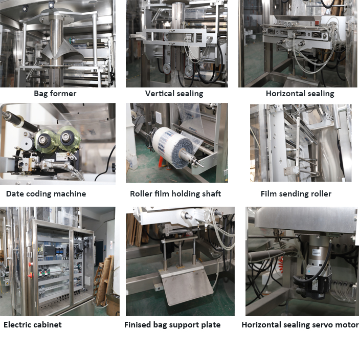Esta máquina es adecuada para sellar bolsas de arroz, frijoles, azúcar y callos. Este Máquina de envasado de arroz está equipado con 2 cabezas pesadora lineal.